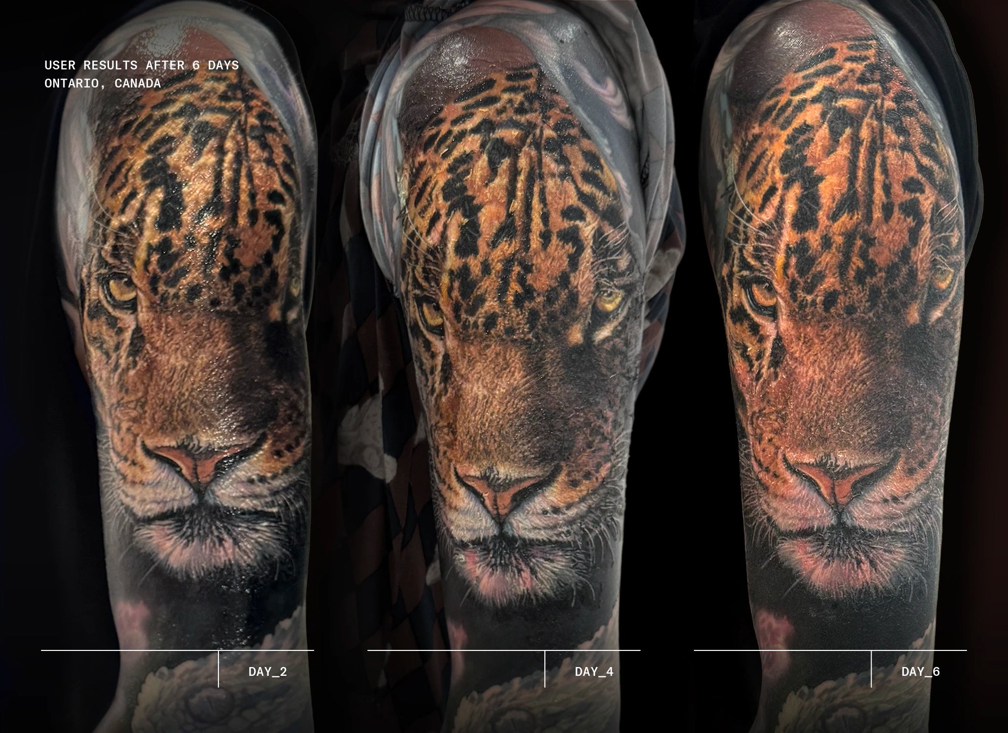 After removing the second skin dressing, apply a thin, even layer to the tattooed area 3–5 times daily. Continue for 14 days or until skin feels recovered.
