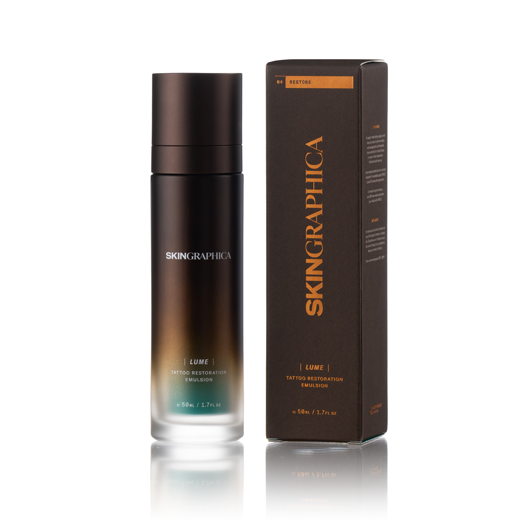 LUME is a breakthrough dual-action formula designed to refresh and refine the look of tattoos over time. With Ink-Safe™ technology, it delivers an instant boost in vibrancy from the first use while supporting gradual restoration that may be noticeable in as little as 10 days. Infused with light-diffusing agents, gentle renewing actives, and nourishing emollients, it smooths and conditions skin without compromising pigment. Especially beneficial for tattoos 5 years or older, LUME helps them appear more luminous, defined, and vivid. Lightweight and fast absorbing, it enhances ink while supporting supple, resilient skin for lasting impact.