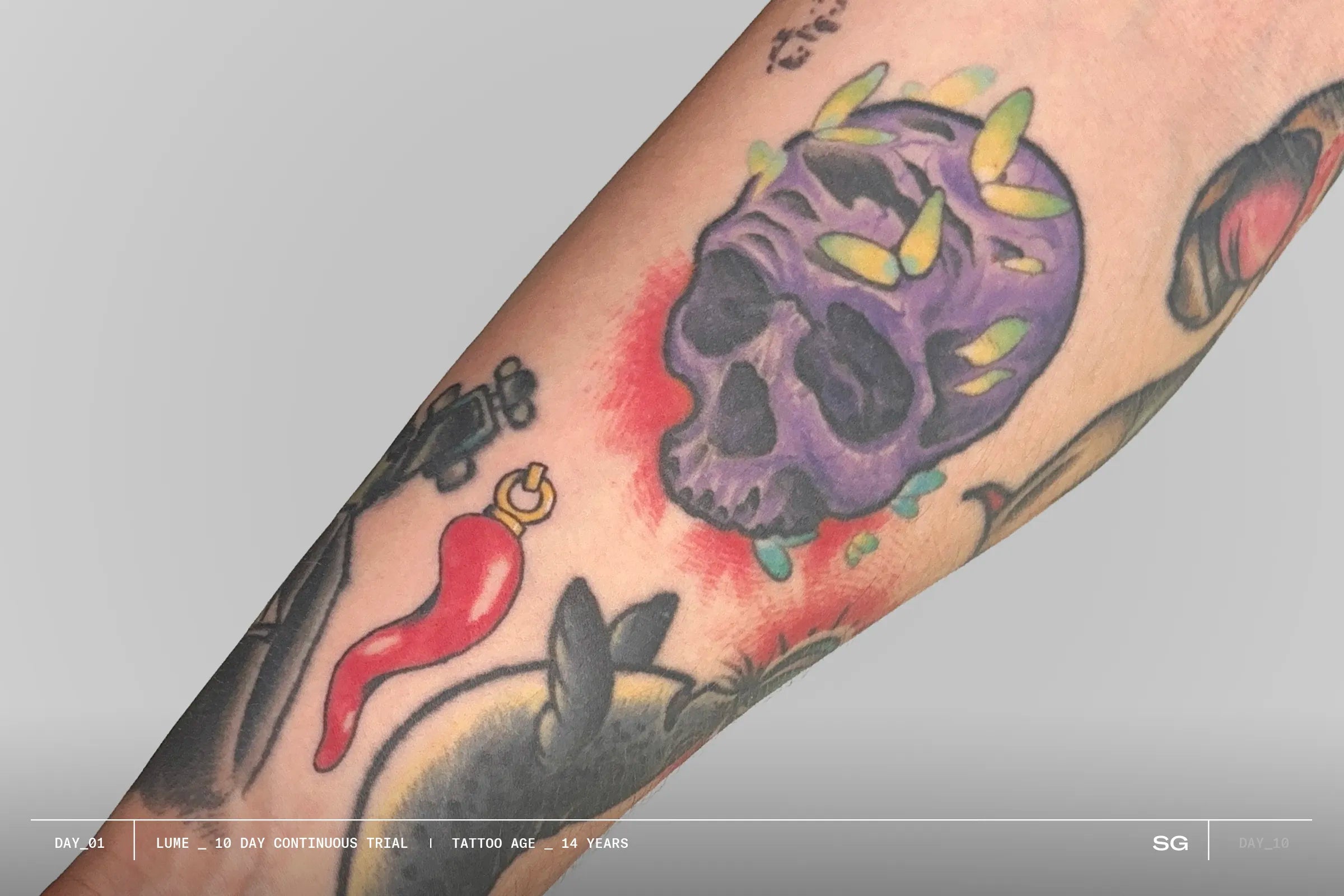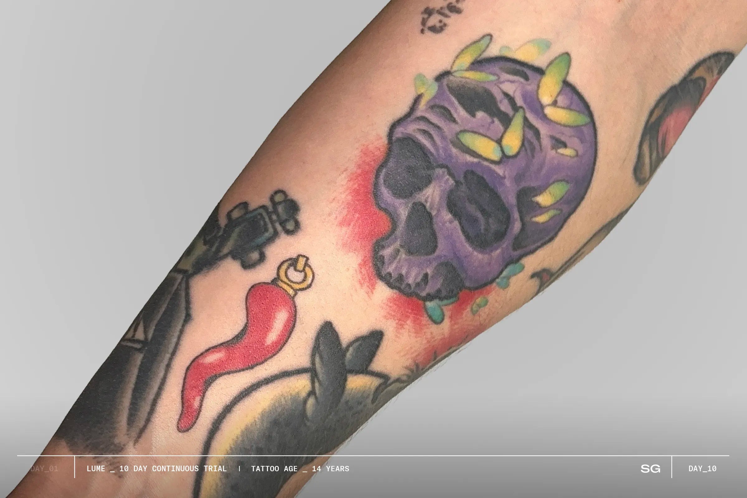 To maintain long term vibrancy, use LUME twice weekly and protect your ink daily with SHIELD.