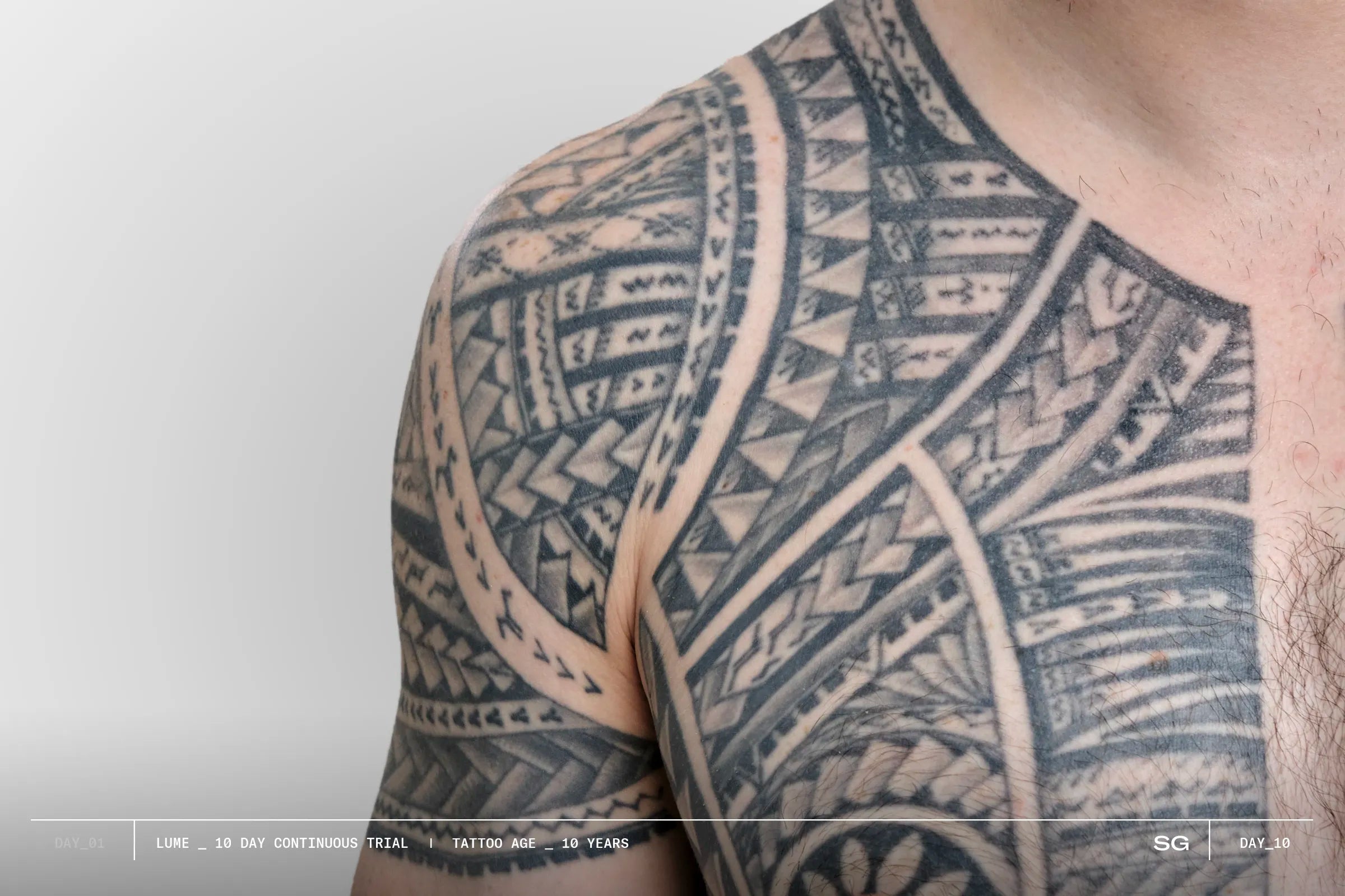 *Consumer trial (conducted in Sydney / LA) with 20 participants using LUME as intructed for 10 consecutive days on black/grey/colour tattoos 5+ years old.